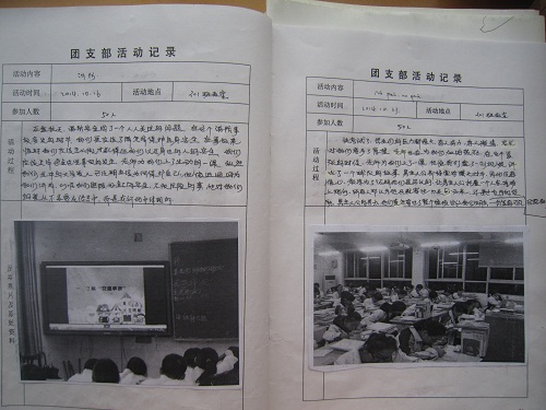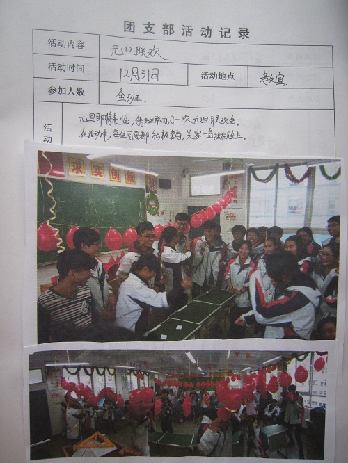 1月15日中午,在茅盾中学团员活动室,由茅盾中学团总支成员,对各年级团支部上交的材料进行打分考评,评选出优秀团支部各年级各三个班级。