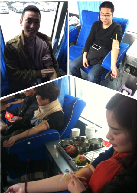 今天上午,无偿献血车开到了市广电台门口,21位员工参与了无偿献血活动,其中青年团员达到了16人,占了80%。