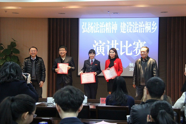 1月21日下午,桐乡市普法办举办了“弘扬法治精神、建设法治桐乡”为主题的演讲比赛,钱成、周璐两位选手代表卫生系统参加了比赛。经过紧张激烈的角逐,从36名参赛选手中脱颖而出,分获一、二等奖。