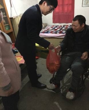 该社团支部为贫困户送去了新鲜水果以及吹风机、雨伞等生活用品,并再一次进行深入的沟通和交流,了解他们的思想、生活状况。一年的关心让彼此建立了深厚的信任,这一年对他们家来说,无疑是很艰辛的一年。不久前母亲离世了,现在的家中只有父子俩相依为命,靠着一点低保收入维持着生活。团员们特意为他们开了爱心存折,每月给予一点微薄的帮助。团员青年鼓励他们正确看待目前暂时遇到的困难,帮助他们树立自立自强的坚定信心,并送上了新春的祝福。