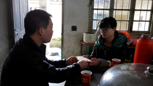 3月13日下午,桐乡技师学院(筹)北校区团委书记沈玉林和德育指导员沈新根老师,在服装部13服装3+2班班主任庄秋蓉的陪同下,来到了学院团委结对的寒门学子朱希熹同学家中。