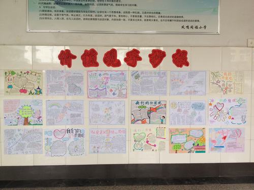 “富强、民主、文明、和谐,自由、平等、公正、法治,爱国、敬业、诚信、友善”是党的十八大首次概括的社会主义核心价值观的24个字。为了帮助学生更好的认识社会主义核心价值观,凤鸣同福小学开展的“我们的价值观”手抄报,是寒假里布置的一项作业,学生在自行学习《社会主义核心价值观》的基础上,完成一幅手抄报作业。在学生们不一样的版面设计中可以看出大家在不同层面上对价值观的理解。上周各班作业已经上交到学校大队部,在美术组老师的精心评比下,每份手抄报都获得了不同的奖次。