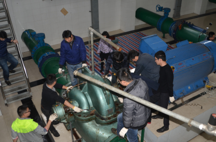午后,一行人又匆匆赶往送水泵房,进行本次活动的第二环节——实战演习,拆装送水泵并且更换机械密封和轴承。本次活动秉承“锻炼年轻人,增强实战性”的宗旨,给予年轻技术人员一个展示自我的平台,全程拆装都由青年技术人员协作完成,最后在一片祥和的拆装氛围中,本次的活动画上了一个圆满的句号。