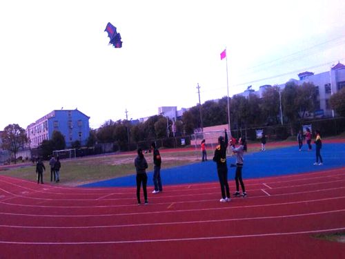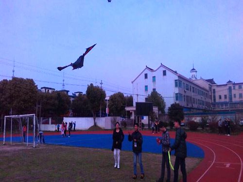 当天下午,操场上充满欢声笑语。学生们格外开心地拉着线在操场上奔跑,脸上露着纯真的笑容。在活动现场,同学们时而迎风小跑,时而又定步抖动手中的线儿。湛蓝的天空中,—上—下翱翔着各种各样风筝,有英姿飒爽的“蝙蝠”,翩翩起舞的“蝴蝶”……这些风筝又像展翅高飞的“苍鹰”。看着展翅高飞的风筝,同学们欢呼声一阵接着一阵,整个操场都沉浸在欢乐的海洋中。