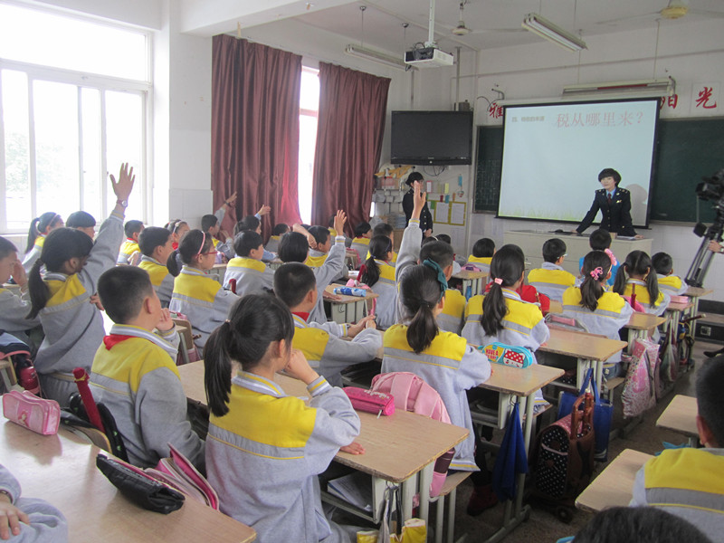 “税收宣传进校园”是该局近年来税收宣传月的重要内容之一,旨在帮助青少年认识税收、了解税收,从小树立税收意识和税收法制观念,让学生成为税法的学习者和宣传员,将诚信纳税意识通过学生传至家长,走向千家万户。