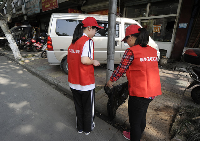 为响应桐乡市政府的号召,积极迎接国家卫生城市的复评,4月30日下午,市卫生学校团委带领学生义工银行为凤鸣路进行清卫活动。 在清卫活动中, 身穿红色义工服、头戴红色义工帽的学生异常的显眼。她们在凤鸣路上干得热火朝天,有的拿着垃圾袋捡起地上的包装纸、塑料瓶,有的拿着火钳将地上的纸屑碎片捡得干干净净。 参加活动的学生义工表达了广大青少年参与文明城市创建的热情和决心,并呼吁广大居民群众共同参与志愿服务行动,共同营造美好幸福家园、和谐干净的社区环境。