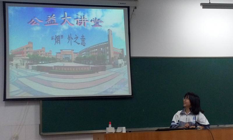5月8日下午,桐乡市凤鸣高级中学学生公益大讲堂在科技楼二楼阶梯教室正式开课。本期公益大讲堂的话题是吸烟有害健康系列:“烟”外之意。