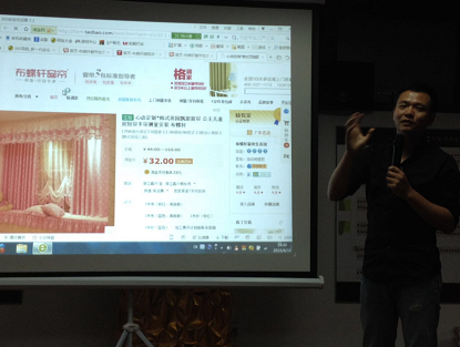 首先是由天猫布蝶轩的负责人蒋建洪主讲。蒋建洪分享了自己的创业历程,分析了自身店铺在运营、产品方面的优缺点,并强调了在现阶段产品或者运营某一方面的优势对于淘宝店的重要作用;此外蒋建洪还介绍了现阶段布蝶轩的发展重心:打通店铺与淘宝网的O2O平台“极有家”的渠道,在新家装行业的市场上拓展自身业务。对于今年淘宝推出的企业店铺也较为看好,正在积极进入中。淘普科技的负责人李忠其介绍了自己在阿里巴巴的产业带从业的经验。在拍摄图片、设置关键词分享了自己的感受。