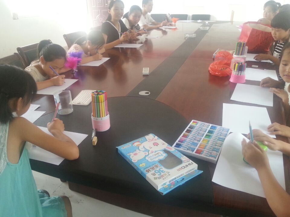 为进一步丰富青少年学生的假期生活,近日,乌镇镇关工委、共青团在五星村会议室举行了画图比赛,比赛的主题是 “五水共治、清三河”,去年已经全部完工,主题比较抽象化,但是这样的主题能充分发挥青少年学生们的想象力。此次参加画画的小朋友共计14名。比赛分一等奖一名、二等奖两名、三等奖三名。另外则是参与奖。经过一个小时的努力,终于都画好了,此次活动获得第一名的是周冰羽,周冰羽同学画的是以前村庄里的河流是黑河、臭河、垃圾河。河面上飘着人们生活中的生活垃圾,河里的鱼儿都快死了,鱼儿在说:“救救我,我不想呆在这里了,好臭。”而经过了我们清三河之后,河水清澈了,河面的垃圾也不见了,多了净化水质的荷叶,鱼儿开心的说:“河水好干净,我好喜欢呆在这里。”周冰羽同学的画,简洁,干净,生动、主题明确,能充分的表现出整改前和整改后的对比。