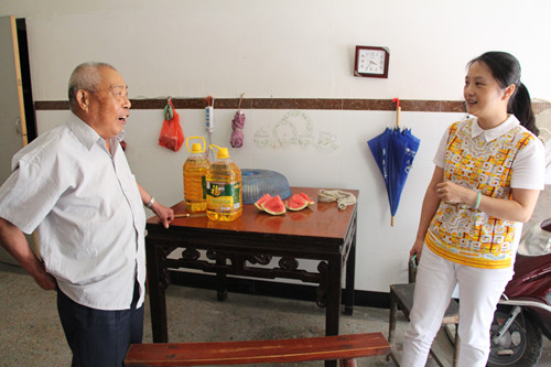 许福昌和朱金明分别在革新村和城南区从事过村工作,都是因为疾病导致生活困难。在老人家中,团员们与他们亲切交谈,详细询问了老人的生活状况和身体状况。老人激动地述说他们的工作和生活,并对团员们的到来感谢。