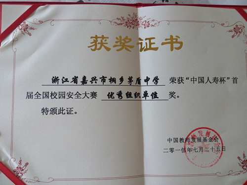 ,由中国教师发展基金会和中国人寿股份有限公司联合主办的首届全国校园安全大赛在北京圆满落下帷幕,茅盾中学的师生一行四人受邀在北京会场参加了现场颁奖典礼。