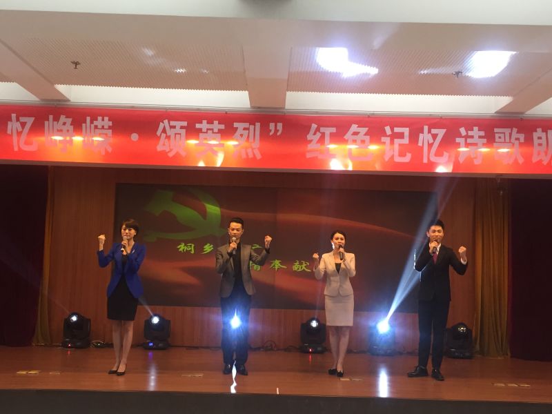 为纪念抗战胜利70周年,9月1日下午,我市举办“忆峥嵘 颂英烈”红色记忆诗歌朗诵比赛,广电台四位青年主持人获得比赛金奖。 本次比赛有近200名选手参赛,大家都以抗战经典爱国诗词为内容,或声情并茂,或激昂有力,将真挚的爱国主义情怀传递给现场每一位观众。 最终,广电台四位青年主持人以扎实的基本功、豪迈的气势以及动人的情感拿到了全场最高分。大家表示,通过这次比赛,不仅歌颂了抗战英雄前仆后继不屈不挠的革命精神,还能增强民族自豪感,获益匪浅。