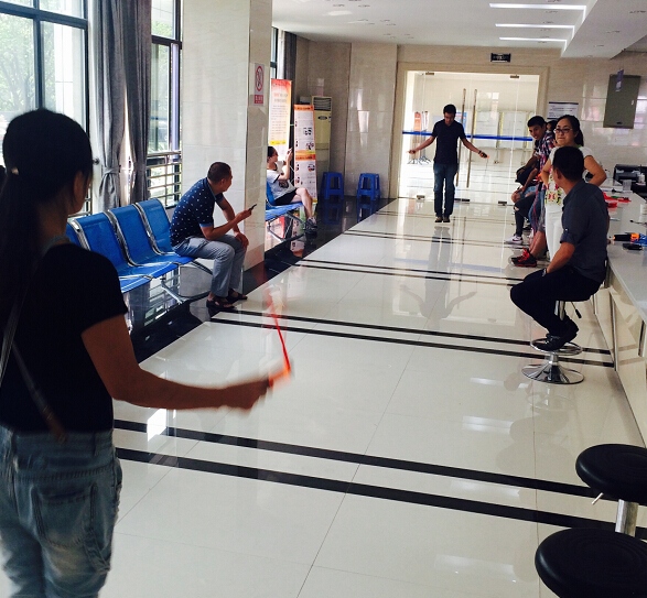 活动为单人跳绳比赛,每组4人同时进行,1分钟内跳绳次数最多的前6名为优胜者。随着裁判的一声号令“开始”,跳绳在选手们手中上下飞舞。选手们姿态各异,有的呼呼生风,有的轻盈优美,有的气定神闲,有的一鼓作气,引得大家阵阵叫好,比赛成绩是不断刷新,气氛也是越来越激烈,经过激烈角逐,吴静等6名选手进入优胜奖。