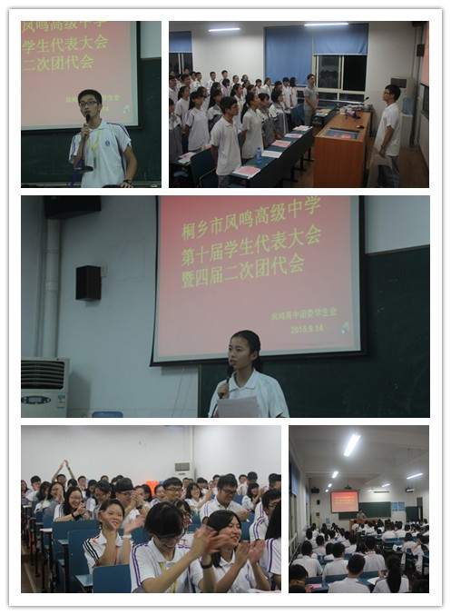 9月14日晚上,凤鸣高中第十届学生代表大会暨四届二次团代会在科技楼二楼阶梯教室隆重举行,本次学代会共设置了两项议程:一、审议通过第九届学生会工作报告;二、竞聘产生第十届学生委员会。会议共出席代表134名。