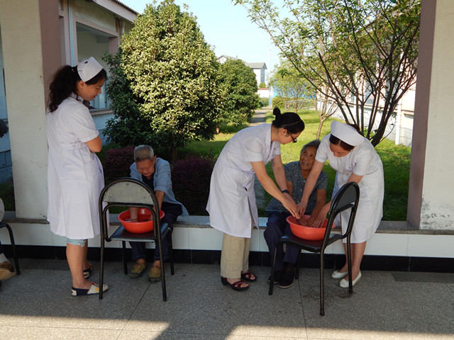 讲座后,皮研所两位护士长与我院康复村徐红霞医生长别就如何正确检查、护理麻风眼、手、足,给老人们做示范实操,培养老人们的自我护理技能,动员麻风病患者和康复者主动参与自我护理,有效降低二级畸残率,让麻风康复者们实施自我照料,促进畸残康复和心里康复,进而提高病人的生存质量,降低麻风病危害。