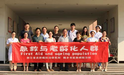 每年九月的第二个星期六,为“世界急救日”,今年的主题是“急救与老龄化人群”。9月10日下午,浙江省皮肤病防治研究所严丽英所长、嘉兴市疾病预防控制中心曹家穗书记和我皮防院院杨松标院长携20余青年医疗志愿者,在我院康复村共同主办了今年的主题宣传活动。
