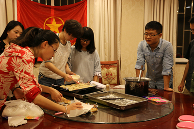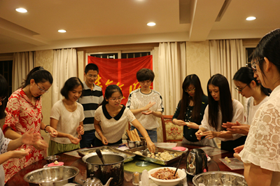 傍晚6点不到,大家便早早来到活动地点准备起来。活动一开始就热火朝天,有的和面、有的调馅、有的擀皮,经过两个小时的制作,大家终于做出了60几个小巧精致的鲜肉月饼。整个过程虽然漫长,但大家却做得有滋有味,很多人是第一次亲手制作月饼,对整个过程充满好奇。这次活动让大家对传统饮食制作有了更加深刻的了解。