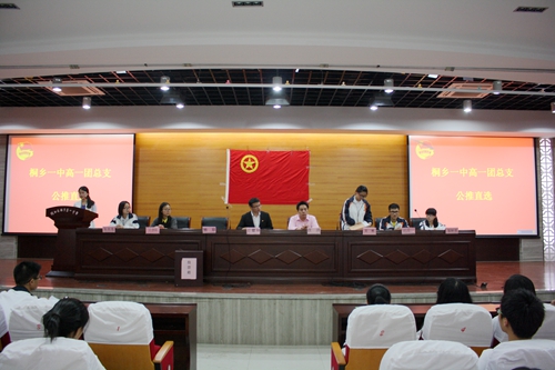 为贯彻落实党的十八大精神,推动基层民主,改进和完善党的后备军共青团的组织制度,积极推进团内民主,调动团员积极性,增强团组织凝聚力、战斗力, 桐乡一中开展新一学年公推直选。在此活动的准备阶段,“公推直选”组织领导机构和工作小组以“公推直选”监督组按照团支部换届的程序,实施阶段主要是从报名、资格审查,推荐初步人选,实施组织考察,确定预备人选到最后的代表大会选举。9月23日,桐乡一中团委向全校各班发布公告,公布选拔职位、报名条件、选拔程序和方法,向全校学生发“公推直选”工作公开信,进行广泛宣传发动。并召开相应会议进行动员部署,进行动员。10月9日在宣传橱窗内张贴高一团总支候选人的相关资料,以便过往师生浏览阅读,熟悉候选人的基本资料,曾获荣誉以及日常表现,宣扬了公开、择优的精神。10月19日星期一傍晚5:20在科技馆五楼报告厅准时举行了公推直选代表大会。大会有团委副书记杨琼主持,出席人员有老团干汪洋、团委书记任耀坤、团委副书记吴彬等。大会首先组织年级团总支书记候选人进行竞职演讲和答辩,由其他年级团总支委员候选人预备人选进行自我介绍,再由本年级全体团员直接差额选举产生陆一凡、周静怡等4位委员。