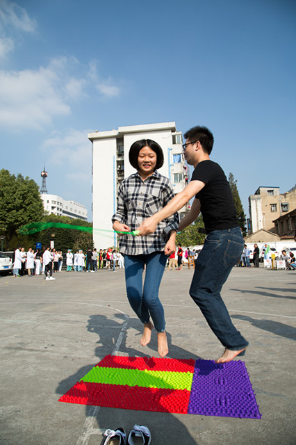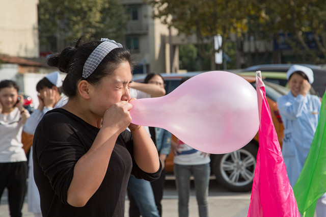 此次趣味接力赛项目由“同心协力吹气球”、“托球接力”、“踢毽子” “指压板跳绳”、“怪兽过河”五个项目组成,医院各科室14支代表队近100名运动员参加了比赛。运动员们昂首挺胸,迈着矫健的步伐走向赛场,充分展现了医院员工积极向上的精神面貌。下午2时,比赛正式开始,现场气氛十分活跃。电视节目中火爆一时的游戏项目在现场轮番上演。尤其是在吹气球和指压板跳绳的环节中,平日看似优雅、帅气的小伙和姑娘们丢掉 “偶像包袱”,努力使劲的将气球吹破,忍着脚底的疼痛将绳飞起,每个人都投入激烈的“战斗”。伴随着现场此起彼伏的加油声和欢呼声,最后放射科参赛队以娴熟的技术,亲密无间的配合取得了比赛的冠军,内三病区获得亚军、外一获得季军。
