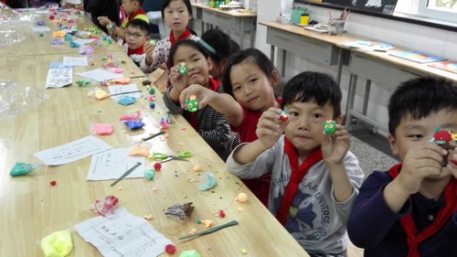 天女小学凤凰校区三、四年级约500名学生参加了此次活动。下午一时,在学校操场举行了简短的启动仪式。桐乡市青少年宫副主任许雅颖简要地介绍了各个活动项目,并就活动中需要注意的事项作了讲解。一时半,活动正式开始,无比兴奋的孩子们迫不及待地涌向各个活动场所。电子百拼、船模远航、酷炫车模、快乐魔方、豆豆大变身、挥毫泼墨、脸谱画站、彩塑陶陶站、变变巧手屋、齐心协力等11个丰富多彩的活动项目让孩子们乐开了花。整个下午,校园各个活动场所已经成了一片欢乐的海洋,孩子们的脸上洋溢着灿烂的笑容。