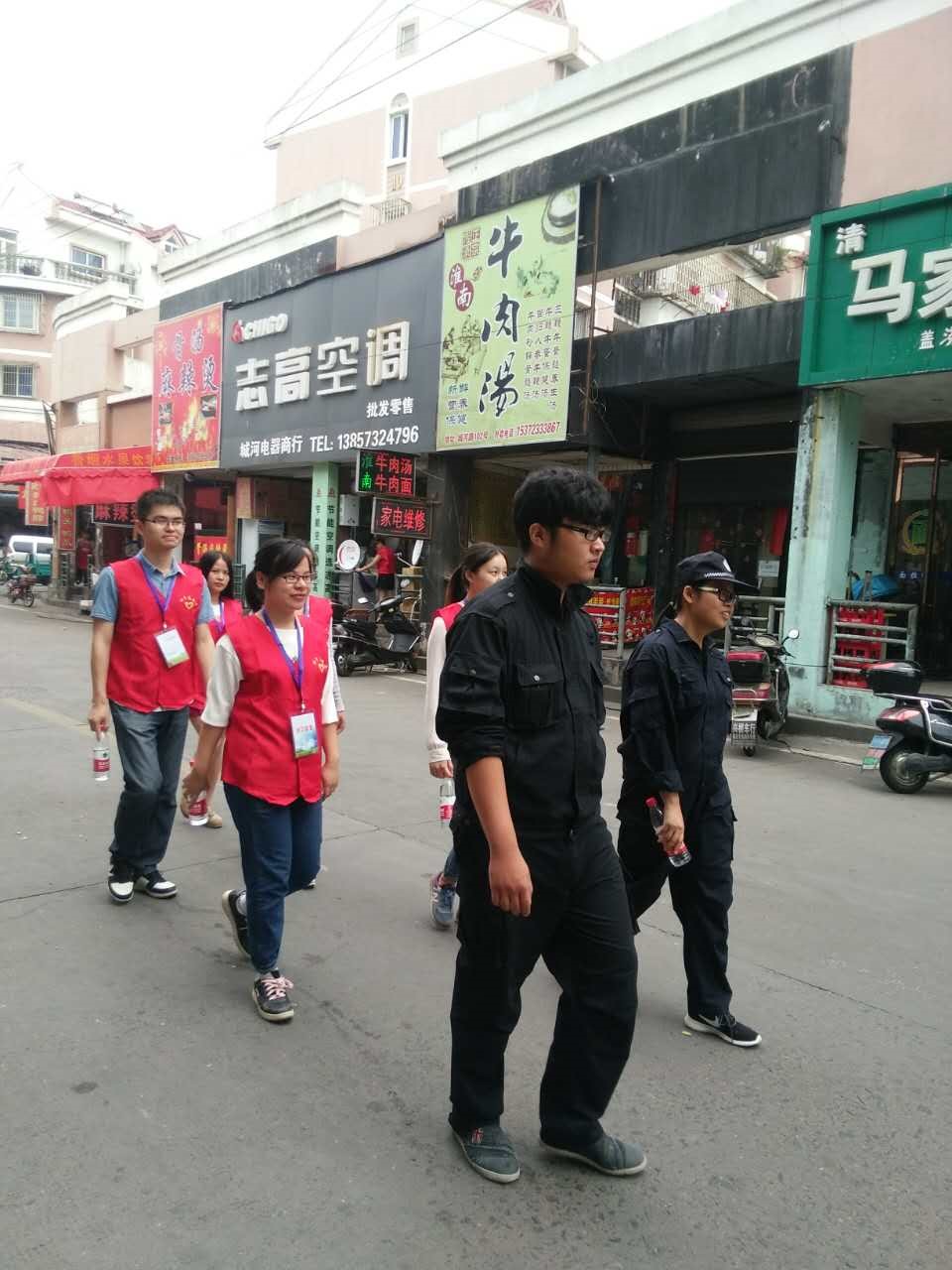 28名新招录公务员分成4组,由梧桐中队团支团员们带领着,分别对梧桐大街、凤鸣路、鱼行街、东兴街、城河弄、宏源路等重点区域路段进行市容管理,工作体验内容包括:1、徒步巡查,发现并劝导驱赶流动摊贩;2、规范、纠正、管理沿街商铺门前三包(越门经营、乱堆放等);3、教育、劝导乱发小广告、宣传单行为;4、清理树木、电线杆等公共设施上的乱张贴;5、督促沿街店铺装修等占道手续办理;6;为求助群众提供指路、咨询等简便服务。