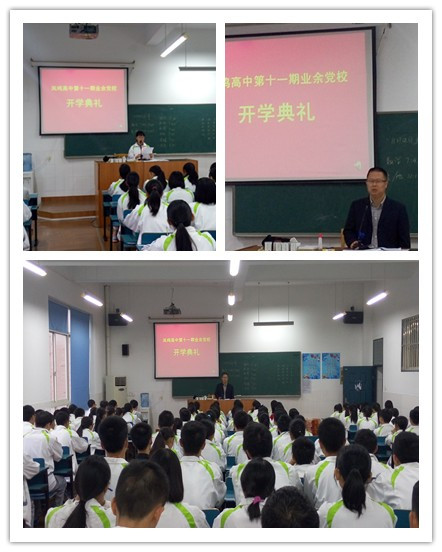在庄严的国歌声开学典礼拉开帷幕,课余党校教务主任、校团委书记王精国老师宣读了党校管理条例和本期党校活动计划,并强调注意事项,要求大家在十八大会议精神指导下,努力学习党的理论知识。高一(1)班学生徐志盛代表新学员发言,表示要努力学习党的理论知识,树立正确的世界观、人生观、价值观,团结、带动身边广大同学共建和谐校园。