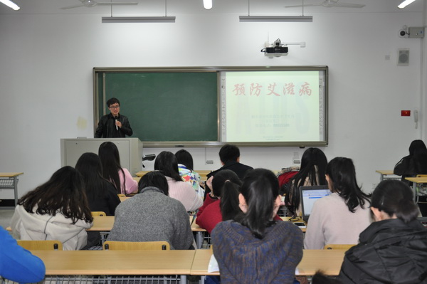 讲座中,市中医院公共卫生科志愿者结合多年的临床实践工作经验,从艾滋病疫情形势、艾滋病基本症状、艾滋病传播途径、学校艾滋病防控四个方面给传媒学子讲解和宣传艾滋病的相关知识。