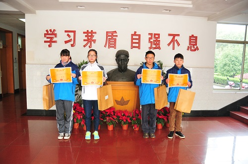 在茅盾像前,学生们领取了属于自己的荣誉和奖品,寝室是我家,我家需我饰,茅高是我家,我爱我家。