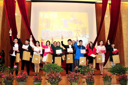 为了发挥同学们的语言表达才能,展示同学们主持节目的爱好,营造良好的校园文化氛围。12月10日晚上,由茅盾中学团委主办的“潜力茅高”主持人大赛在艺术中心举行。本次决赛邀请了校长施学斌、党委书记钱智跃、副校长张文华、政教处主任王辅国、高一年级部主任施建洪、艺术老师夏宾成、徐颖,语文老师李晓敏、余荣军作为评委。