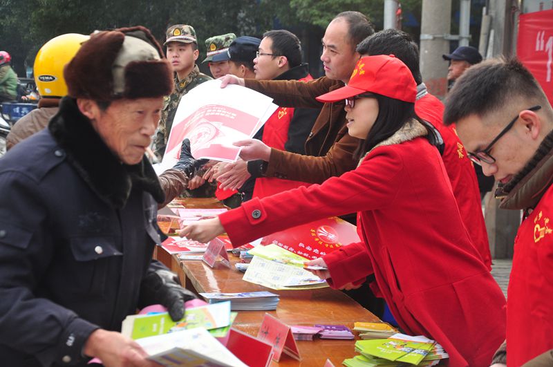 为进一步加强平安宣传教育,提高群众的法律素质和遵纪守法的意识,积极营造“学法助平安”的良好氛围,12月4日,高桥镇团委联合综治、司法、公安、交通、人力社保、国土、环保、计生、妇联、民政等相关部门人员在高桥集镇开展了以“弘扬宪法精神,推动创新、协调、绿色、开发、共同发展”为主题的平安宣传志愿服务活动。活动以播放宣传标语、摆放宣传展板、发放宣传手册和资料用品、防盗防抢防骗知识讲解、法律知识有奖竞答等群众喜闻乐见的宣传形式,向广大群众开展法律宣传,活动现场共发放法制宣传资料3000多份。通过活动的开展,使广大群众直接获得法律服务,为助力社会平安取得了良好宣传效果。