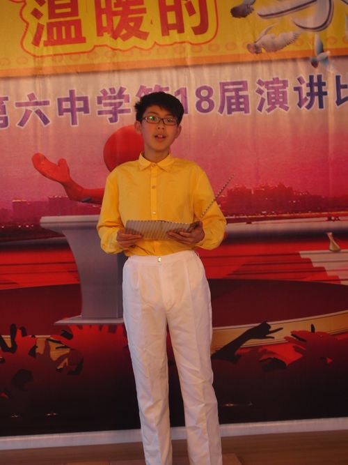 “六中,不缺乏感动,因为有父母般的恩师;六中,不缺乏温暖,因为有手足般的同窗……”随着主持人的开场宣布比赛开始,选手们有的声情并茂,描绘同学的青春气息;有的娓娓道来,述说老师的辛勤耕耘……724班沈岑萧同学的《因为有你,岁月如歌》、823班沈家艳《茫茫人海中,小小的我们》结合班级中的点滴生活,让我们感受到平日里老师对我们温暖关怀;816班吴柳谊的《816——我们共同的家》和719班高张培的《心灵的港湾》让我们感受到班级如家、同窗如手足……