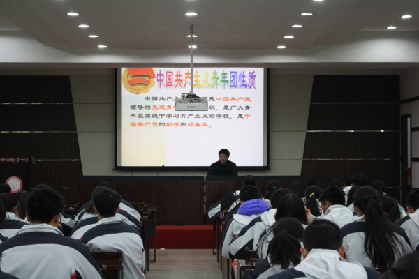 最后一课以精美的课件为载体,对团课学员们进行团的基本知识教育和引导。同时对“团的性质、团员证、团徽、团歌、团旗”等内容的组成、来历和历史意义进行详细的解说。让各团课学员们进一步了解和掌握了团的基本知识和团的光荣历史。尤其是在齐读入团宣誓词的环节中,再一次振奋了同学们的精神,激发了同学们的荣誉感。最后,任老师对团员必须履行的义务和权利进行了强调,用实例向同学们诠释了成为一名共青团员的自豪与荣耀。最后,任耀坤老师带领各团课学员了解团歌《光荣啊,中国共青团》,对团歌思想进行简要说明。为时40分钟的培训课程圆满结束。