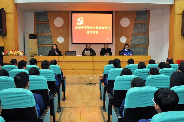 今天中午,茅盾中学第十六届学生课余党校开学典礼在行政楼报告厅隆重举行。校党委书记钱智跃、第一党支部书记张文华、团委书记严秋萍参加了开学典礼。