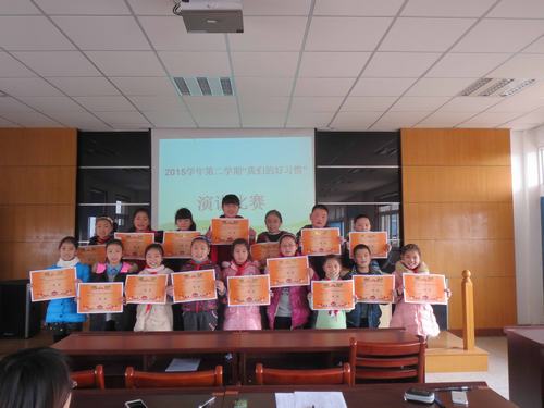 3月2日中午,凤鸣同福小学举行了“我们的好习惯”主题演讲比赛。参加对象为三至六年级的16名学生。 选手们以《爱绿、护绿、培绿》、《珍爱生命之水》、《合理饮食、促进健康》、《让读书成为一种习惯》等为演讲题目,进行了精彩地演讲。演讲中,同学们都将良好的习惯融入到实际生活中去,他们个个自信、大方、富有激情。他们如同春天里的花儿,一朵朵争奇斗艳,让评委老师们耳目一新,也博得了学生的一阵阵热烈的掌声。