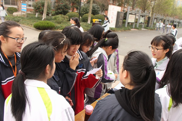 活动中学校团委精编了关于世界水日、中国水周和五水共治等相关题目作为题库,也精心准备了笔记本、中性笔以及养乐多作为有奖竞答的奖品。参与的老师和同学只需要从题库中随机抽取一题作答,回答正确就可以任意挑选一件自己喜爱的奖品。活动开始后学生参与热情高涨,都积极抽取题目作答,没过一刻钟,所有准备的奖品都派送完毕。虽然没有奖品的激励,但是后来的同学还是积极参与到宣传活动中来,积极回答关于保护水资源的竞答。