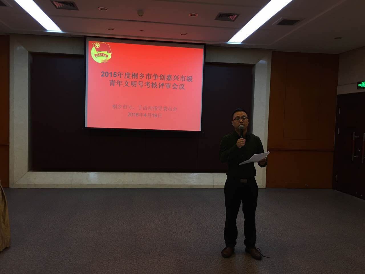 4月19日,2015年度桐乡市争创嘉兴市级青年文明号考核评审会在市政府大楼召开,12家嘉兴市青年文明号争创集体负责人参加了评审会。