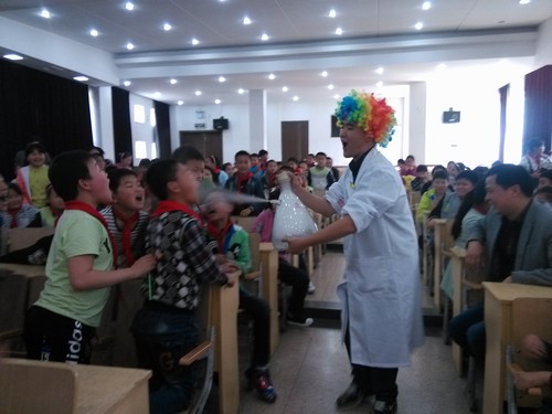 科技馆的老师用风趣幽默的肢体动作、简洁明了的科学术语,带领孩子们畅游在科学的世界里。可乐变雪碧、空气大炮、污水净化、无敌风火轮、干冰汽水、干冰秀、圆球。一个又一个的节目,紧紧地吸引着孩子们的眼神、牢牢地牵动着孩子们的心神,迷茫者、猜测者、恍然大悟者,者者有之。台下的求学若渴、台上的精彩协作,这个下午,孩子们无疑是欢乐的、收获的。魔法秀的最后节目---干冰秀,更是令孩子们回味无穷,赞叹:来到了唯美的仙镜!