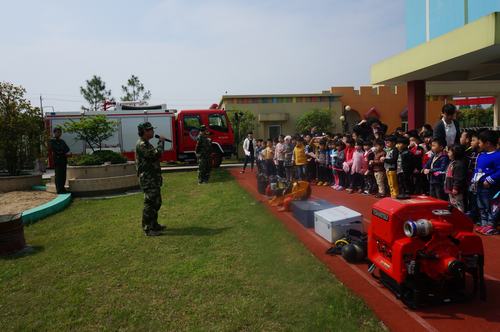 4月28日,凤鸣街道中心幼儿园开展了一次消防演练。