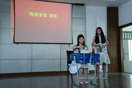 经过自荐报名,各系(部)的初选,共有18名学生进入“阳光学生”的决赛。舞台上,每位选手先是1分钟自我介绍,然后是才艺展示。18名学生各自拿出“看家本事”:诗词朗诵,T台走秀,茶艺表演,吉他弹唱,歌舞表演,英语演讲……最终10名学生荣获“阳光学生”称号。