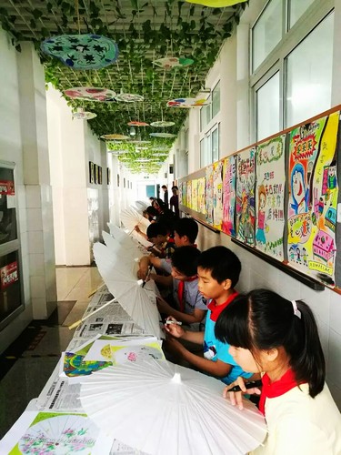 6月7日,凤鸣天女小学举办了纸伞彩绘大赛。100多名小学生参加了比赛。 本次活动地点选在艺术长廊,给学生营造了浓郁的绘画氛围。开始画纸伞画啦!孩子们一个个使出看家本领,发挥大胆想象,傲气的红梅,娇羞的荷花,可爱的红鲤……一幅幅灵动生辉的纸伞画出现在了大家面前,真可谓“提笔妆伞添新颜,斑斓多彩满天小。” 501班家长王先生看到孩子的作品后说:“这样的活动能让孩子增长见识,体会纸伞画这一传统手工艺的精华。”