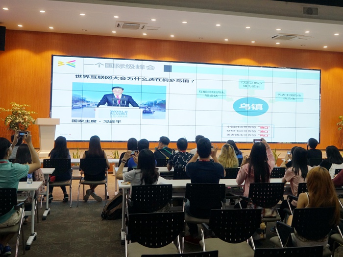 考察团一行首先来到位于桐乡经济开发区的中国·乌镇互联网产业园,听取了关于互联网产业发展情况的介绍,并进行参观体验。据了解,中国·乌镇互联网产业园项目是乌镇互联网创新发展试验区的重要平台,项目总投资约为100亿元。项目采取“一步规划,分步实施”的思路推进,分过渡区、先导区与拓展区三个阶段开发建设。截至目前,在过渡区内办公10家,注册完成的企业共有23家,还有30余个意向项目正在洽谈中。