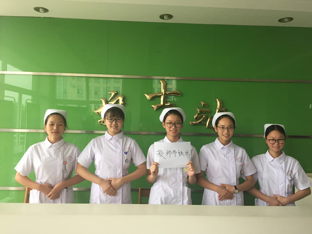 又是九月,又到教师节,教似春风,诲如化雨。时值第32个教师节之际,桐乡市卫生学校团委、学生会发起了“人生若只如初见,亲爱的老师,你用粉笔耕耘着我们的未来,却也染白了你的头发,如果可以,请收下我们最诚挚的祝福:教师节快乐!” 的感恩倡议。于是乎,在课堂上,在走廊里,在操作间等,无处不有“教师节快乐!”的祝福卡,到处可闻“教师节快乐!”的祝福声,整个校园都弥漫着幸福温暖的感恩味道。