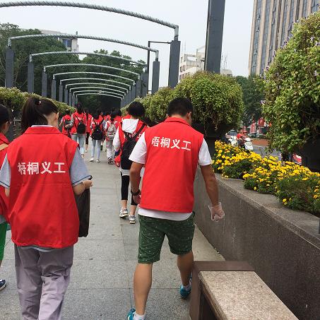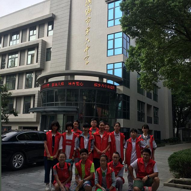 今天是十月一日,国庆假期的第一天,我们桐乡六中的小小志愿者们汇聚在一起,要做一件渺小却非常重要的事情。我们穿着小红衣,手里拿着抹布、扫帚、垃圾袋,为我们校园和街道的整洁贡献我们自己的力量。