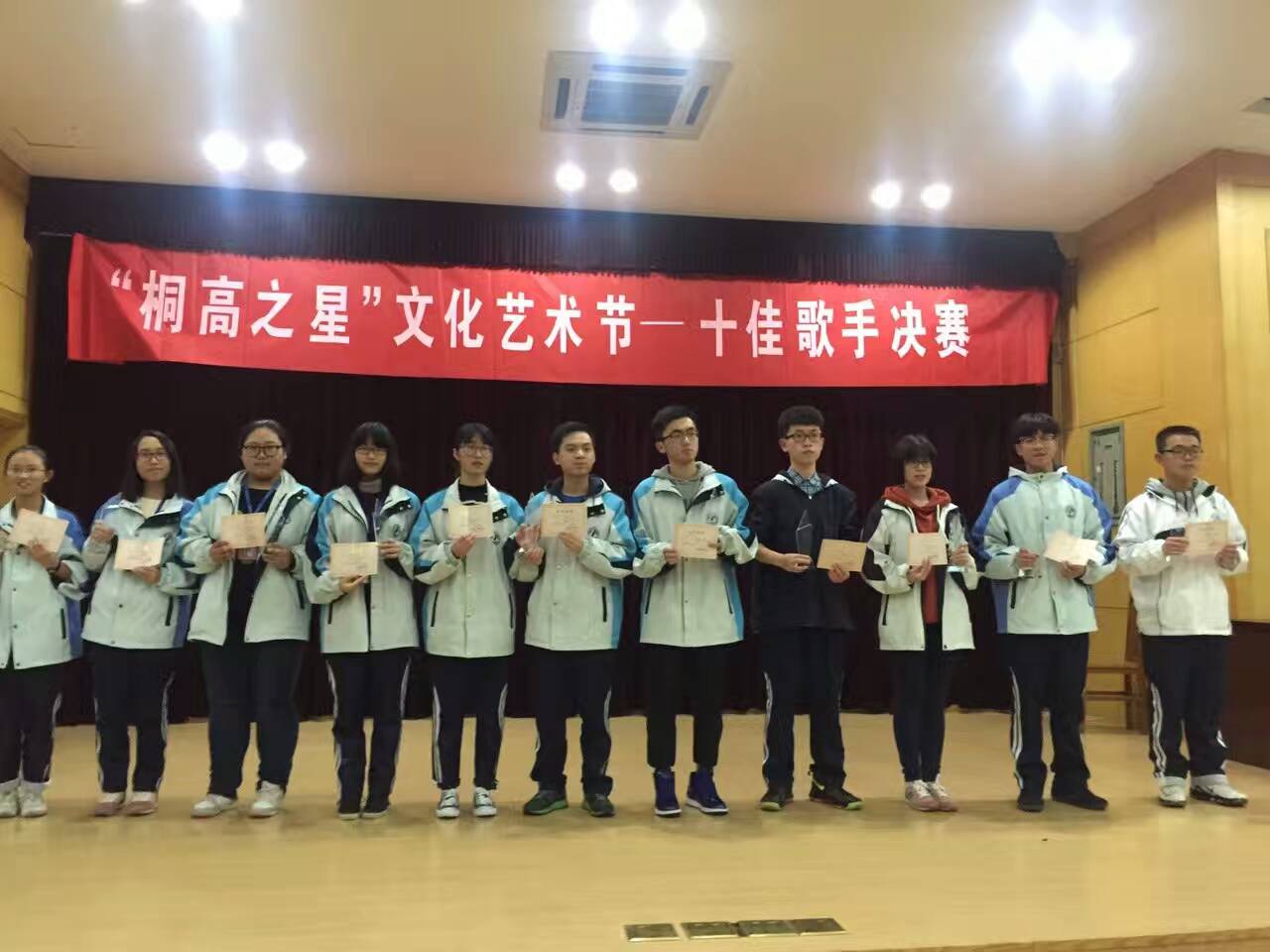 歌声嘹亮,音符飘扬,青春激荡,梦想起航。12月13日晚,桐乡市高级中学校园“十佳歌手”决赛在科技楼报告厅隆重开唱。担任此次大赛的评委有王裴媚、冯霞英、严明华等10位老师。
