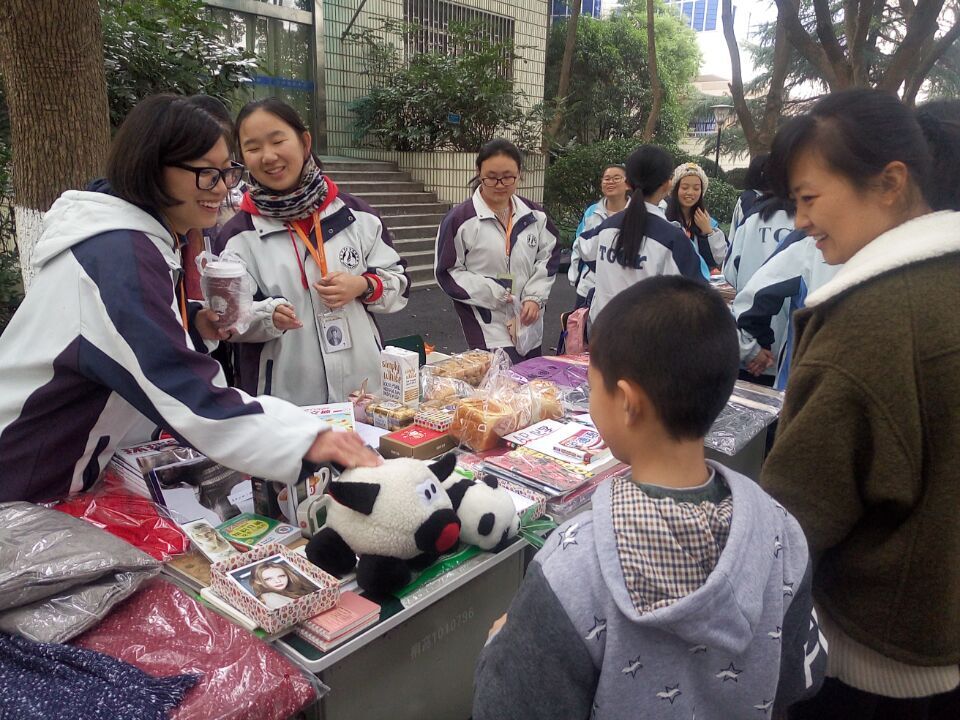 “摊主们”早早地来到销售现场,布置摊位,摆放商品,俨然一副小商人的架势,宣传海报更是布置得五彩缤纷、别出心裁。商品五花八门,有闲置的书籍,玩具,有各式新奇的发饰、土特产,更有学生自制的蛋糕、书签等。“售货员”和“收银员”绞尽脑汁、各出奇招:有的高喊“买一送一”,有的打出“满额减现金”的标语,有的甚至标明“买就送学长签名”……真是八仙过海各显神通。“顾客们”在各个摊位前流连忘返,仔细地挑选着想买的物品,激烈地讨价还价着,淘宝和交易的热情一点都不亚于下午那灿烂的阳光。老师们也加入其中,带着小孩一起沉浸在这片欢乐的海洋中。经过两个多小时,“跳蚤市场”活动还在进行,大家的购物热情有增无减,“销售业绩”也相当可观。摊主唐朱晨辰表示:“我不是说要赚多少钱,我只是想把自己闲置的书籍卖给需要的人,价钱我自己能接受就行,给多给少无所谓。”