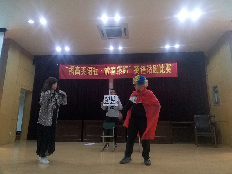 为了给同学们创造良好的双语氛围,在享受艺术魅力的同时提高英语口语能力,12月23日桐乡市高级中学在报告厅举办了“英语话剧”比赛。