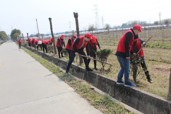 3月7日下午,濮院镇油车桥村团支部组织志愿者30余人,在村西直路开展党员志愿者“争当时代先锋、共建美好家园”主题实践活动,活动现场,春风和煦,志愿者们热情高涨,积极踊跃,他们有的清理路边成堆的废弃树枝,为种树腾出空间,有的打塘、扶苗,有的填土、敲实,一棵棵树苗在志愿者的劳动中扎下了根。 本次活动通过志愿者的劳动宣传了植树造林和保护生态环境的意识,增强了志愿者们的活力、凝聚力以及团队精神。