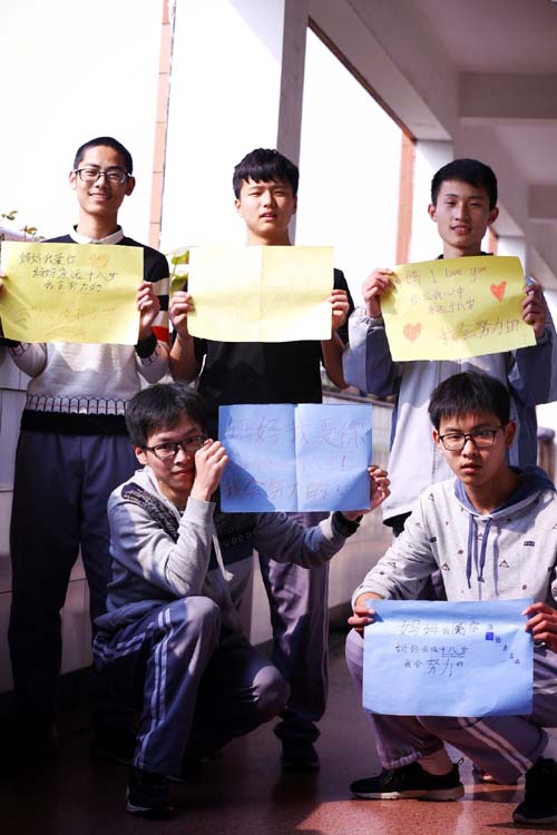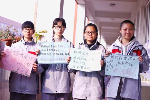 此时,教学楼五楼的走廊上,更是一道独特的风景,一张张寄语卡留下了莘莘学子的校园祝福,字里行间流淌着对母亲的热爱、眷恋、祝福,同时也表达了自己的决心: