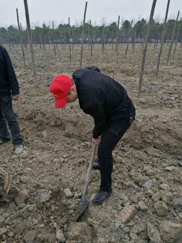 一大早,青年志愿者陆续来到了植树场地,为节约时间,在等待队员到来的同时讨论起植树的分工。你扶树,我铲土填坑,分工合作。现场一片热闹忙碌的景象,大家三人一组,五人一群,分工协作,扶好树苗、挥锹培土、夯实土层,个个热情洋溢、干劲十足。经过一个多小时的奋战,60余株梧桐树树苗整齐地栽种在了乐安桥岸边的土地上,树枝迎风招展,将原本空旷的一片河岸点缀得生机盎然。