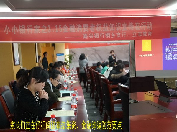 3月12日,嘉兴银行桐乡支行团支部以“3.15和市金融办非法金融宣传教育活动”为契机,再次与立志教育合作,举办了第六期“小小银行家”活动,二十多个家庭共五十余人参与了此次活动,支行青年理财经理杨佳丽担任主讲。